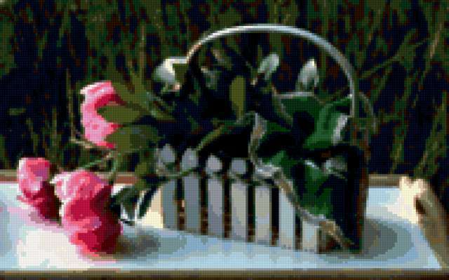 Ориентировочно так, схема вышивки «Unnamed-1173544», созданная автором malkinaiv, будет выглядеть при отшиве на канве. Размер данной вышивки равен 190x119 крестов, при этом используется 60 цветов. Ключевые слова, по которым можно найти эту схему: натюрморт, цветы, букет, пионы. Также, вы можете взглянуть на оригинальную картинку, соответствующую данной схеме вышивки.