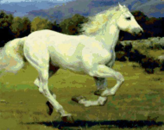 Ориентировочно так, схема вышивки «Unnamed-1176652», созданная автором ze79, будет выглядеть при отшиве на канве. Размер данной вышивки равен 190x151 крестов, при этом используется 57 цветов. Ключевые слова, по которым можно найти эту схему: лошадь, животные, конь. Также, вы можете взглянуть на оригинальную картинку, соответствующую данной схеме вышивки.