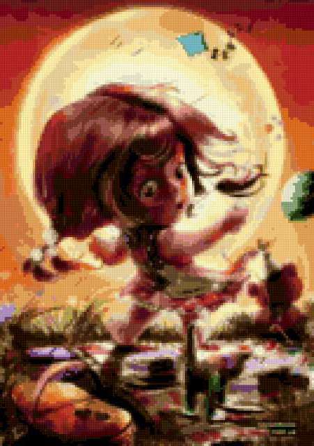 Ориентировочно так, схема вышивки «Unnamed-1184588», созданная автором Minin, будет выглядеть при отшиве на канве. Размер данной вышивки равен 134x190 крестов, при этом используется 49 цветов. Ключевые слова, по которым можно найти эту схему: живопись, искусство, картина, детское. Также, вы можете взглянуть на оригинальную картинку, соответствующую данной схеме вышивки.