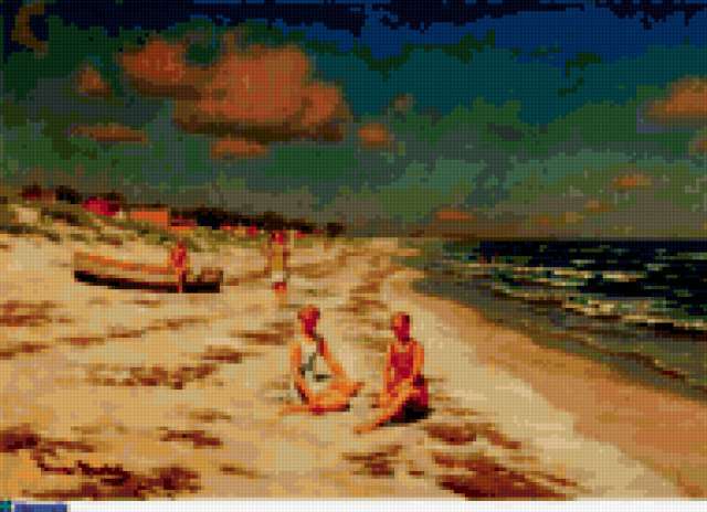 Ориентировочно так, схема вышивки «Unnamed-1186280», созданная автором burova, будет выглядеть при отшиве на канве. Размер данной вышивки равен 190x138 крестов, при этом используется 74 цветов. Ключевые слова, по которым можно найти эту схему: искусство, живопись, картина, пейзаж, море, берег, пляж, девушки, люди. Также, вы можете взглянуть на оригинальную картинку, соответствующую данной схеме вышивки.