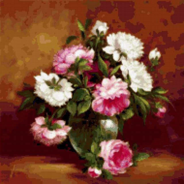 Ориентировочно так, схема вышивки «Unnamed-1199239», созданная автором malkinaiv, будет выглядеть при отшиве на канве. Размер данной вышивки равен 190x190 крестов, при этом используется 65 цветов. Ключевые слова, по которым можно найти эту схему: искусство, живопись, картина, цветы, букет, ваза. Также, вы можете взглянуть на оригинальную картинку, соответствующую данной схеме вышивки.