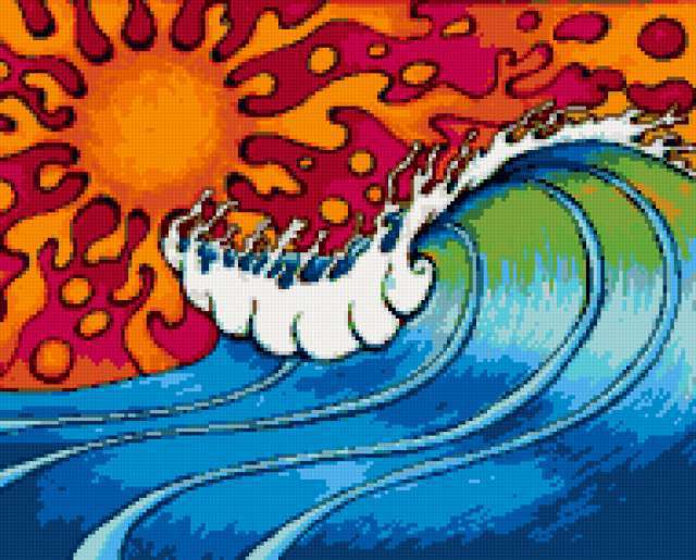 Ориентировочно так, схема вышивки «Unnamed-1200014», созданная автором eldi_22, будет выглядеть при отшиве на канве. Размер данной вышивки равен 190x153 крестов, при этом используется 32 цветов. Ключевые слова, по которым можно найти эту схему: пейзаж, лето, море, солнце, волна . Также, вы можете взглянуть на оригинальную картинку, соответствующую данной схеме вышивки.