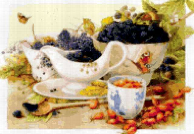 Ориентировочно так, схема вышивки «Unnamed-1204534», созданная автором malkinaiv, будет выглядеть при отшиве на канве. Размер данной вышивки равен 190x132 крестов, при этом используется 78 цветов. Ключевые слова, по которым можно найти эту схему: искусство, живопись, картина, натюрморт, бабочки, ягоды. Также, вы можете взглянуть на оригинальную картинку, соответствующую данной схеме вышивки.