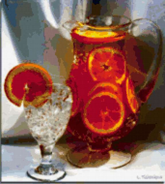 Ориентировочно так, схема вышивки «Unnamed-202275», созданная автором belal14, будет выглядеть при отшиве на канве. Размер данной вышивки равен 171x190 крестов, при этом используется 74 цветов. Ключевые слова, по которым можно найти эту схему: фрукты, апельсин, натюрморт. Также, вы можете взглянуть на оригинальную картинку, соответствующую данной схеме вышивки.