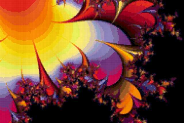 Ориентировочно так, схема вышивки «Unnamed-206044», созданная автором kurt, будет выглядеть при отшиве на канве. Размер данной вышивки равен 189x126 крестов, при этом используется 61 цветов. Ключевые слова, по которым можно найти эту схему: абстракция. Также, вы можете взглянуть на оригинальную картинку, соответствующую данной схеме вышивки.