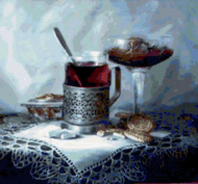 Ориентировочно так, схема вышивки «Unnamed-215065», созданная автором iborissova, будет выглядеть при отшиве на канве. Размер данной вышивки равен 190x177 крестов, при этом используется 58 цветов. Ключевые слова, по которым можно найти эту схему: натюрморт, кухня. Также, вы можете взглянуть на оригинальную картинку, соответствующую данной схеме вышивки.