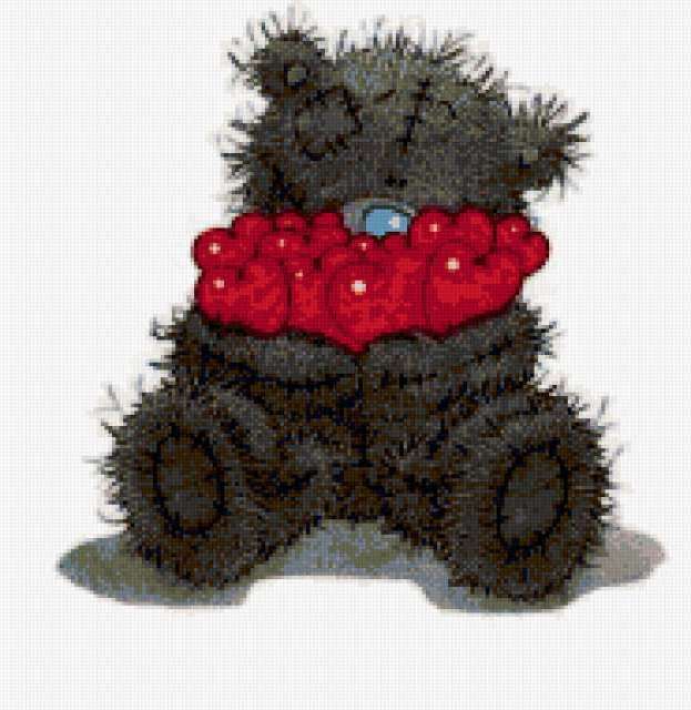 Ориентировочно так, схема вышивки «Unnamed-219627», созданная автором njcbkmlf, будет выглядеть при отшиве на канве. Размер данной вышивки равен 185x190 крестов, при этом используется 54 цветов. Ключевые слова, по которым можно найти эту схему: подушка, картина, открытка, детская, животное, медведь, игрушка, сердечки. Также, вы можете взглянуть на оригинальную картинку, соответствующую данной схеме вышивки.