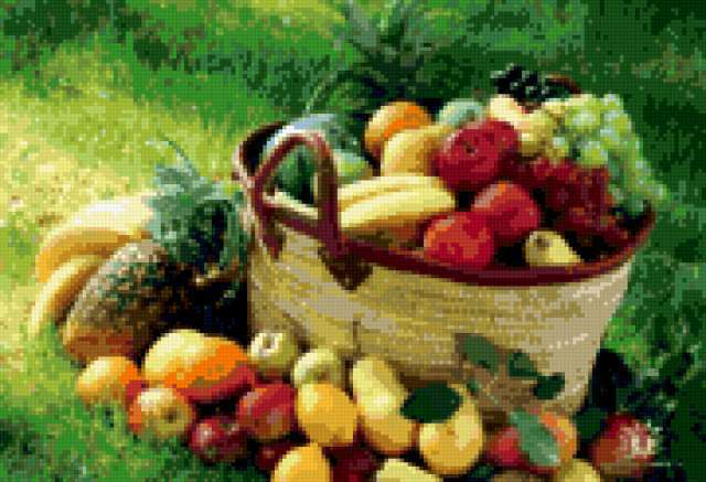 Ориентировочно так, схема вышивки «Unnamed-252010», созданная автором belal14, будет выглядеть при отшиве на канве. Размер данной вышивки равен 180x123 крестов, при этом используется 60 цветов. Ключевые слова, по которым можно найти эту схему: натюрморт, овощи. Также, вы можете взглянуть на оригинальную картинку, соответствующую данной схеме вышивки.