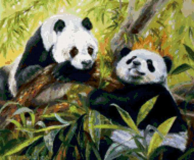 Ориентировочно так, схема вышивки «Unnamed-269752», созданная автором Svetlisha, будет выглядеть при отшиве на канве. Размер данной вышивки равен 190x157 крестов, при этом используется 74 цветов. Ключевые слова, по которым можно найти эту схему: животные, панда, медведи. Также, вы можете взглянуть на оригинальную картинку, соответствующую данной схеме вышивки.