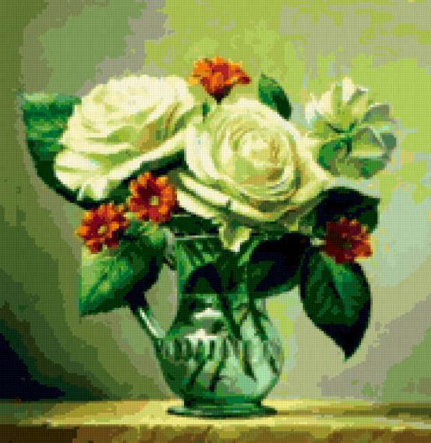 Ориентировочно так, схема вышивки «Unnamed-302570», созданная автором iborissova, будет выглядеть при отшиве на канве. Размер данной вышивки равен 185x190 крестов, при этом используется 67 цветов. К несчастью, автор не назначил для схемы ключевые слова. Также, вы можете взглянуть на оригинальную картинку, соответствующую данной схеме вышивки.