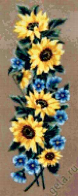 Ориентировочно так, схема вышивки «Unnamed-304167», созданная автором Svetlisha, будет выглядеть при отшиве на канве. Размер данной вышивки равен 76x190 крестов, при этом используется 81 цветов. Ключевые слова, по которым можно найти эту схему: цветы, букет, подсолнухи. Также, вы можете взглянуть на оригинальную картинку, соответствующую данной схеме вышивки.