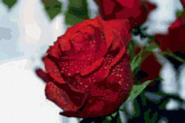 Ориентировочно так, схема вышивки «Unnamed-315927», созданная автором burova, будет выглядеть при отшиве на канве. Размер данной вышивки равен 190x127 крестов, при этом используется 65 цветов. Ключевые слова, по которым можно найти эту схему: роза, розы, цветок, цветы, капли. Также, вы можете взглянуть на оригинальную картинку, соответствующую данной схеме вышивки.