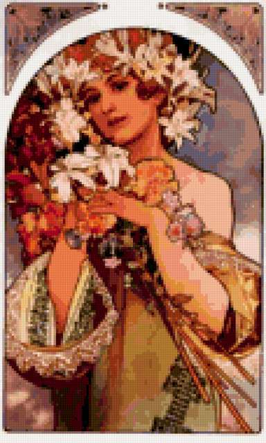 Ориентировочно так, схема вышивки «Unnamed-320776», созданная автором maseka09, будет выглядеть при отшиве на канве. Размер данной вышивки равен 114x190 крестов, при этом используется 73 цветов. Ключевые слова, по которым можно найти эту схему: картниа, искусство, живопись, ретро, девушка, портрет. Также, вы можете взглянуть на оригинальную картинку, соответствующую данной схеме вышивки.