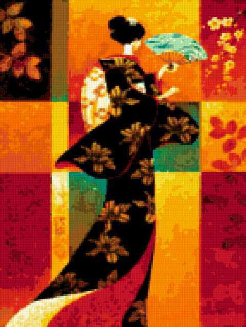 Ориентировочно так, схема вышивки «Unnamed-338341», созданная автором mgalimosca, будет выглядеть при отшиве на канве. Размер данной вышивки равен 143x190 крестов, при этом используется 58 цветов. Ключевые слова, по которым можно найти эту схему: японка, веер. Также, вы можете взглянуть на оригинальную картинку, соответствующую данной схеме вышивки.