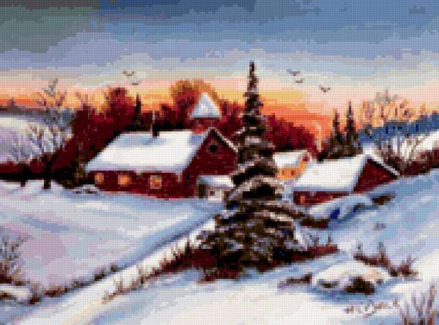 Ориентировочно так, схема вышивки «Unnamed-362557», созданная автором mgalimosca, будет выглядеть при отшиве на канве. Размер данной вышивки равен 190x141 крестов, при этом используется 78 цветов. Ключевые слова, по которым можно найти эту схему: деревня, зима, домики, снег. Также, вы можете взглянуть на оригинальную картинку, соответствующую данной схеме вышивки.