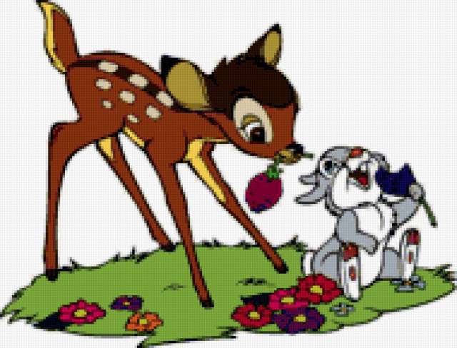 Ориентировочно так, схема вышивки «Unnamed-394579», созданная автором antik-1974, будет выглядеть при отшиве на канве. Размер данной вышивки равен 190x145 крестов, при этом используется 53 цветов. Ключевые слова, по которым можно найти эту схему: дети, картинка, сказка, мультик, зайка. Также, вы можете взглянуть на оригинальную картинку, соответствующую данной схеме вышивки.