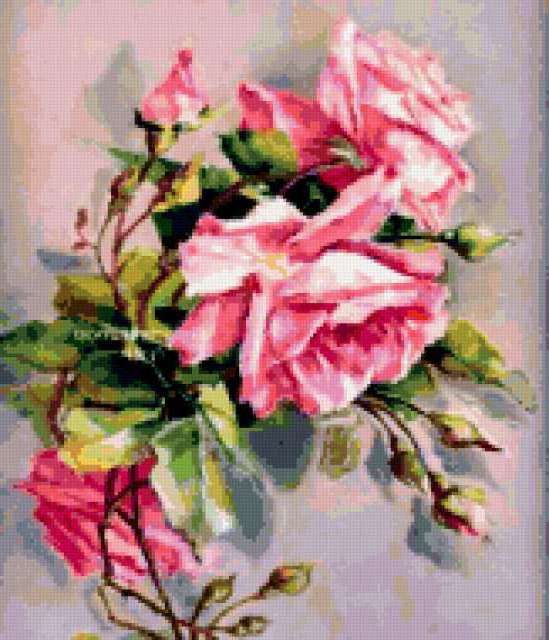 Ориентировочно так, схема вышивки «Unnamed-446562», созданная автором ayse, будет выглядеть при отшиве на канве. Размер данной вышивки равен 163x190 крестов, при этом используется 83 цветов. Ключевые слова, по которым можно найти эту схему: roza, svetq, buket. Также, вы можете взглянуть на оригинальную картинку, соответствующую данной схеме вышивки.