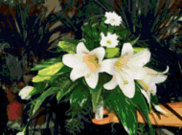 Ориентировочно так, схема вышивки «Unnamed-461699», созданная автором ayse, будет выглядеть при отшиве на канве. Размер данной вышивки равен 190x141 крестов, при этом используется 62 цветов. Ключевые слова, по которым можно найти эту схему: buket, svetq. Также, вы можете взглянуть на оригинальную картинку, соответствующую данной схеме вышивки.