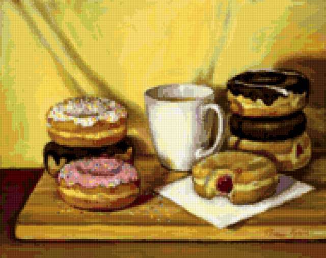 Ориентировочно так, схема вышивки «Unnamed-463556», созданная автором mgalimosca, будет выглядеть при отшиве на канве. Размер данной вышивки равен 190x151 крестов, при этом используется 66 цветов. Ключевые слова, по которым можно найти эту схему: кухня, чай. Также, вы можете взглянуть на оригинальную картинку, соответствующую данной схеме вышивки.