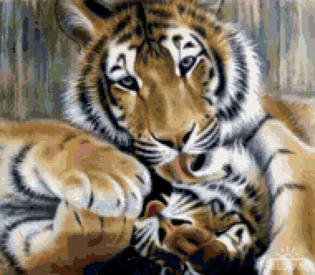 Ориентировочно так, схема вышивки «Unnamed-484743», созданная автором Minin, будет выглядеть при отшиве на канве. Размер данной вышивки равен 190x166 крестов, при этом используется 49 цветов. Ключевые слова, по которым можно найти эту схему: живопись, искусство, картина, животные, кошки. Также, вы можете взглянуть на оригинальную картинку, соответствующую данной схеме вышивки.