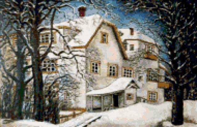 Ориентировочно так, схема вышивки «Unnamed-502188», созданная автором Lamisa, будет выглядеть при отшиве на канве. Размер данной вышивки равен 190x123 крестов, при этом используется 55 цветов. Ключевые слова, по которым можно найти эту схему: зима, домик. Также, вы можете взглянуть на оригинальную картинку, соответствующую данной схеме вышивки.