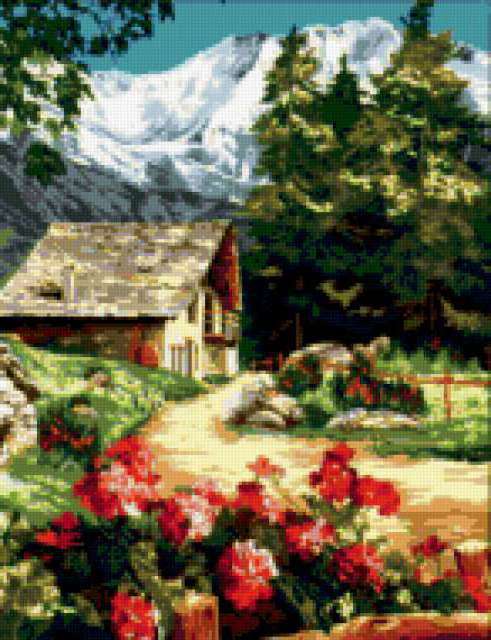 Ориентировочно так, схема вышивки «Unnamed-515845», созданная автором iborissova, будет выглядеть при отшиве на канве. Размер данной вышивки равен 146x190 крестов, при этом используется 81 цветов. Ключевые слова, по которым можно найти эту схему: пейзаж, дом. Также, вы можете взглянуть на оригинальную картинку, соответствующую данной схеме вышивки.