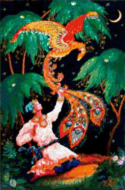 Ориентировочно так, схема вышивки «Unnamed-518688», созданная автором Aliko, будет выглядеть при отшиве на канве. Размер данной вышивки равен 125x190 крестов, при этом используется 77 цветов. Ключевые слова, по которым можно найти эту схему: сказка, жар-птица. Также, вы можете взглянуть на оригинальную картинку, соответствующую данной схеме вышивки.