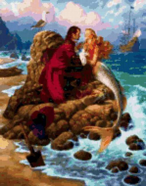 Ориентировочно так, схема вышивки «Unnamed-518714», созданная автором Aliko, будет выглядеть при отшиве на канве. Размер данной вышивки равен 149x190 крестов, при этом используется 78 цветов. Ключевые слова, по которым можно найти эту схему: сказка, русалка. Также, вы можете взглянуть на оригинальную картинку, соответствующую данной схеме вышивки.