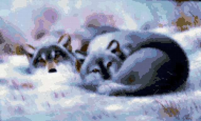 Ориентировочно так, схема вышивки «Unnamed-527520», созданная автором Minin, будет выглядеть при отшиве на канве. Размер данной вышивки равен 190x115 крестов, при этом используется 35 цветов. Ключевые слова, по которым можно найти эту схему: живопись, искусство, картина, природа, животные, волк. Также, вы можете взглянуть на оригинальную картинку, соответствующую данной схеме вышивки.