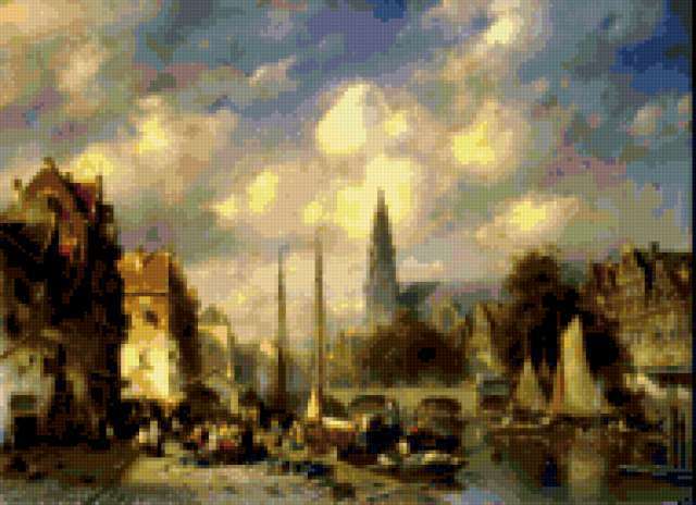 Ориентировочно так, схема вышивки «Unnamed-531597», созданная автором Aliko, будет выглядеть при отшиве на канве. Размер данной вышивки равен 190x138 крестов, при этом используется 78 цветов. Ключевые слова, по которым можно найти эту схему: городские улицы, пейзажи. Также, вы можете взглянуть на оригинальную картинку, соответствующую данной схеме вышивки.