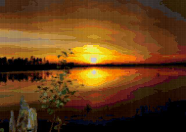 Ориентировочно так, схема вышивки «Unnamed-533374», созданная автором malkinaiv, будет выглядеть при отшиве на канве. Размер данной вышивки равен 190x135 крестов, при этом используется 51 цветов. Ключевые слова, по которым можно найти эту схему: пейзаж, природа, закат, озеро. Также, вы можете взглянуть на оригинальную картинку, соответствующую данной схеме вышивки.