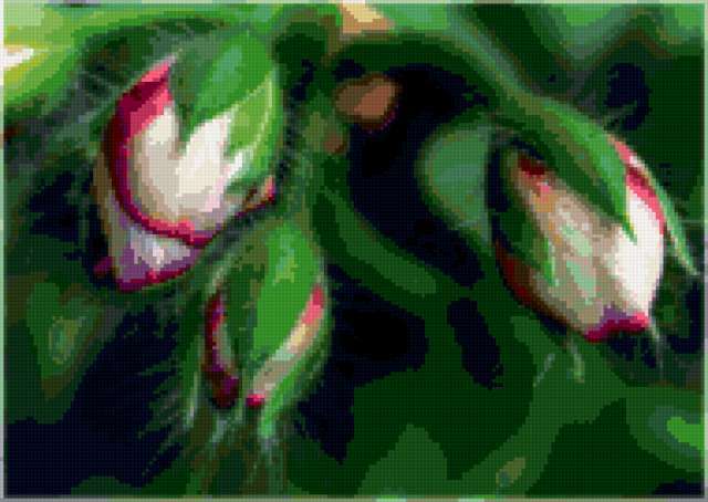 Ориентировочно так, схема вышивки «Unnamed-555116», созданная автором malkinaiv, будет выглядеть при отшиве на канве. Размер данной вышивки равен 190x135 крестов, при этом используется 54 цветов. Ключевые слова, по которым можно найти эту схему: цветы, бутоны. Также, вы можете взглянуть на оригинальную картинку, соответствующую данной схеме вышивки.