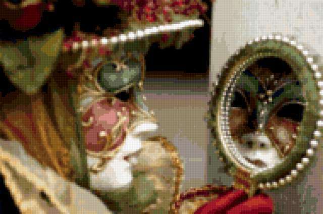 Ориентировочно так, схема вышивки «Unnamed-556790», созданная автором Aliko, будет выглядеть при отшиве на канве. Размер данной вышивки равен 190x126 крестов, при этом используется 77 цветов. Ключевые слова, по которым можно найти эту схему: венеция, карнавал, маска. Также, вы можете взглянуть на оригинальную картинку, соответствующую данной схеме вышивки.