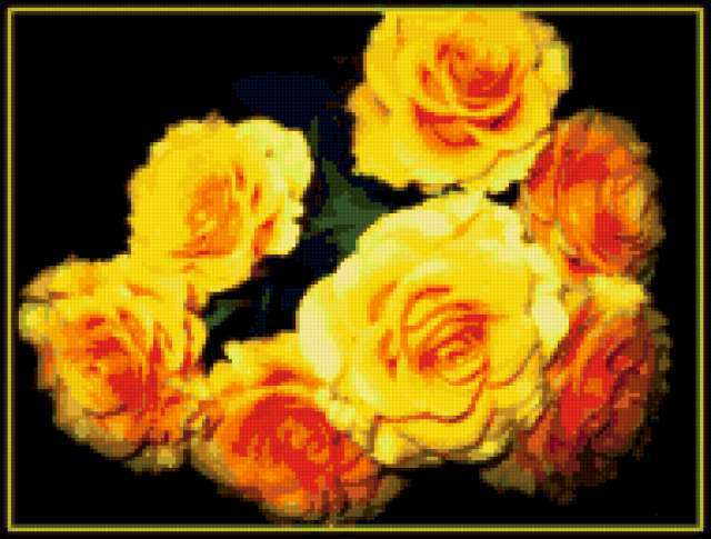 Ориентировочно так, схема вышивки «Unnamed-557366», созданная автором malkinaiv, будет выглядеть при отшиве на канве. Размер данной вышивки равен 190x144 крестов, при этом используется 39 цветов. Ключевые слова, по которым можно найти эту схему: цветы, розы, на черном. Также, вы можете взглянуть на оригинальную картинку, соответствующую данной схеме вышивки.