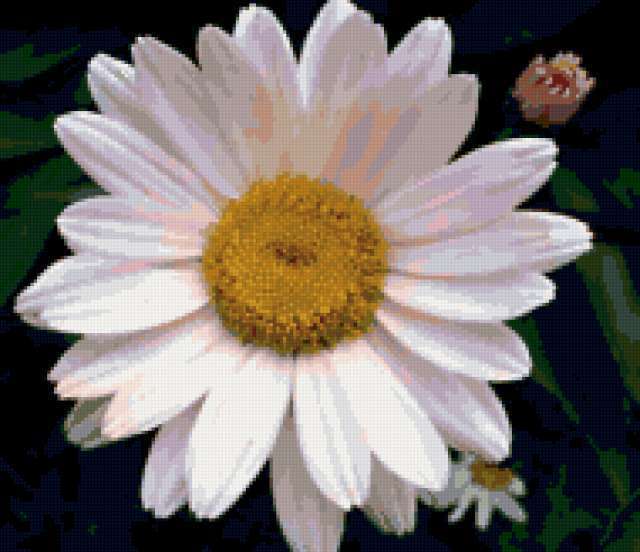 Ориентировочно так, схема вышивки «Unnamed-560195», созданная автором malkinaiv, будет выглядеть при отшиве на канве. Размер данной вышивки равен 190x164 крестов, при этом используется 46 цветов. Ключевые слова, по которым можно найти эту схему: цветы, цветок, ромашки. Также, вы можете взглянуть на оригинальную картинку, соответствующую данной схеме вышивки.