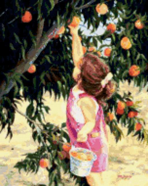 Ориентировочно так, схема вышивки «Unnamed-562138», созданная автором iborissova, будет выглядеть при отшиве на канве. Размер данной вышивки равен 152x190 крестов, при этом используется 79 цветов. Ключевые слова, по которым можно найти эту схему: fruits, kids. Также, вы можете взглянуть на оригинальную картинку, соответствующую данной схеме вышивки.