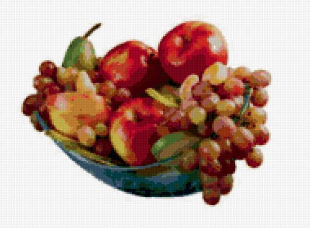 Ориентировочно так, схема вышивки «Unnamed-563441», созданная автором malkinaiv, будет выглядеть при отшиве на канве. Размер данной вышивки равен 190x140 крестов, при этом используется 54 цветов. Ключевые слова, по которым можно найти эту схему: натюрморт, фрукты. Также, вы можете взглянуть на оригинальную картинку, соответствующую данной схеме вышивки.