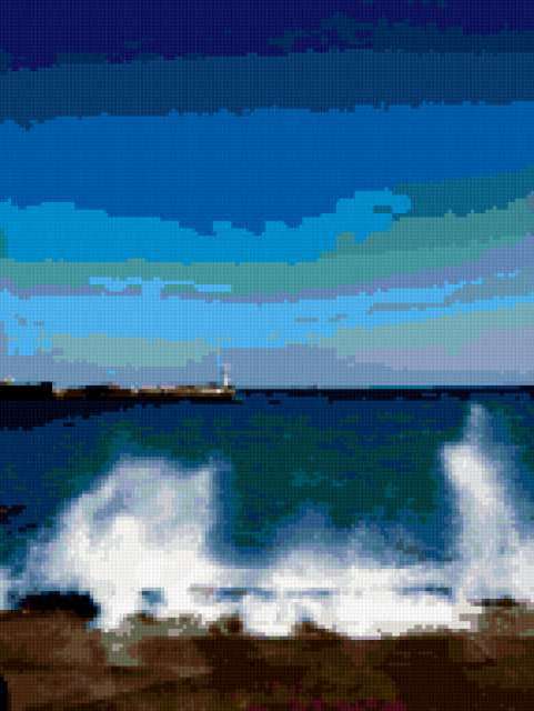 Ориентировочно так, схема вышивки «Unnamed-564832», созданная автором malkinaiv, будет выглядеть при отшиве на канве. Размер данной вышивки равен 143x190 крестов, при этом используется 50 цветов. Ключевые слова, по которым можно найти эту схему: прибой, волны, море, пейзаж, берег. Также, вы можете взглянуть на оригинальную картинку, соответствующую данной схеме вышивки.
