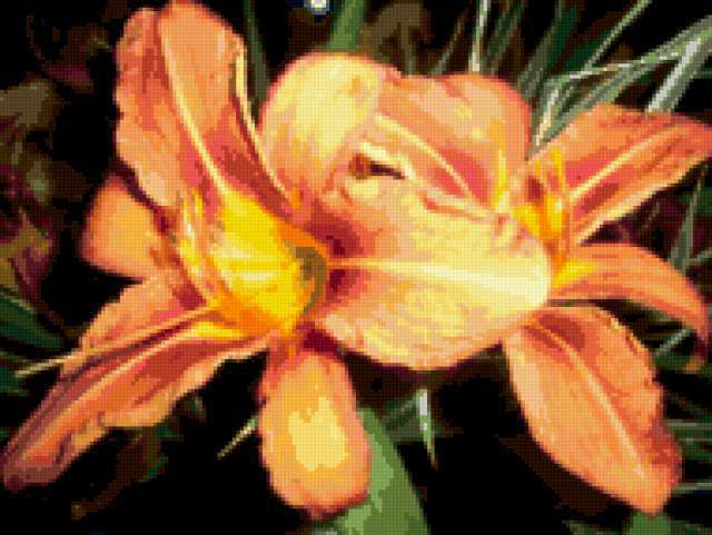 Ориентировочно так, схема вышивки «Unnamed-568512», созданная автором malkinaiv, будет выглядеть при отшиве на канве. Размер данной вышивки равен 190x143 крестов, при этом используется 59 цветов. Ключевые слова, по которым можно найти эту схему: цветы, лилии. Также, вы можете взглянуть на оригинальную картинку, соответствующую данной схеме вышивки.