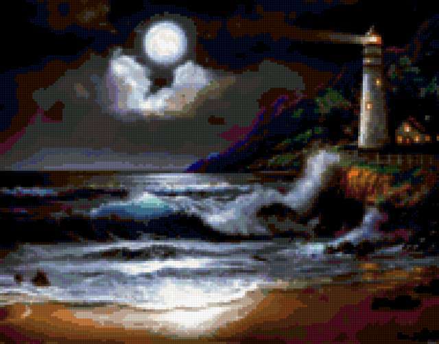 Ориентировочно так, схема вышивки «Unnamed-574275», созданная автором iborissova, будет выглядеть при отшиве на канве. Размер данной вышивки равен 190x149 крестов, при этом используется 68 цветов. Ключевые слова, по которым можно найти эту схему: lighthouse. Также, вы можете взглянуть на оригинальную картинку, соответствующую данной схеме вышивки.