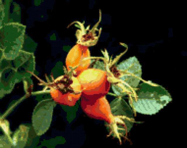 Ориентировочно так, схема вышивки «Unnamed-577299», созданная автором malkinaiv, будет выглядеть при отшиве на канве. Размер данной вышивки равен 190x151 крестов, при этом используется 45 цветов. Ключевые слова, по которым можно найти эту схему: ягоды, шиповник, на черном. Также, вы можете взглянуть на оригинальную картинку, соответствующую данной схеме вышивки.