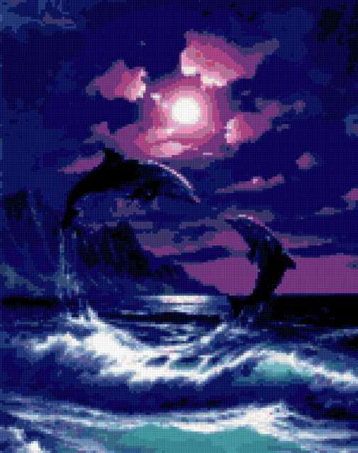Ориентировочно так, схема вышивки «Unnamed-577761», созданная автором iborissova, будет выглядеть при отшиве на канве. Размер данной вышивки равен 150x190 крестов, при этом используется 41 цветов. Ключевые слова, по которым можно найти эту схему: dolphin. Также, вы можете взглянуть на оригинальную картинку, соответствующую данной схеме вышивки.