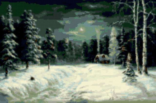 Ориентировочно так, схема вышивки «Unnamed-580714», созданная автором Minin, будет выглядеть при отшиве на канве. Размер данной вышивки равен 190x126 крестов, при этом используется 28 цветов. Ключевые слова, по которым можно найти эту схему: живопись, искусство, картина, природа, зима. Также, вы можете взглянуть на оригинальную картинку, соответствующую данной схеме вышивки.