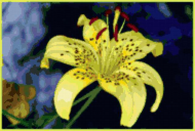 Ориентировочно так, схема вышивки «Unnamed-585656», созданная автором malkinaiv, будет выглядеть при отшиве на канве. Размер данной вышивки равен 190x128 крестов, при этом используется 39 цветов. Ключевые слова, по которым можно найти эту схему: цветы, цветок, лилии. Также, вы можете взглянуть на оригинальную картинку, соответствующую данной схеме вышивки.
