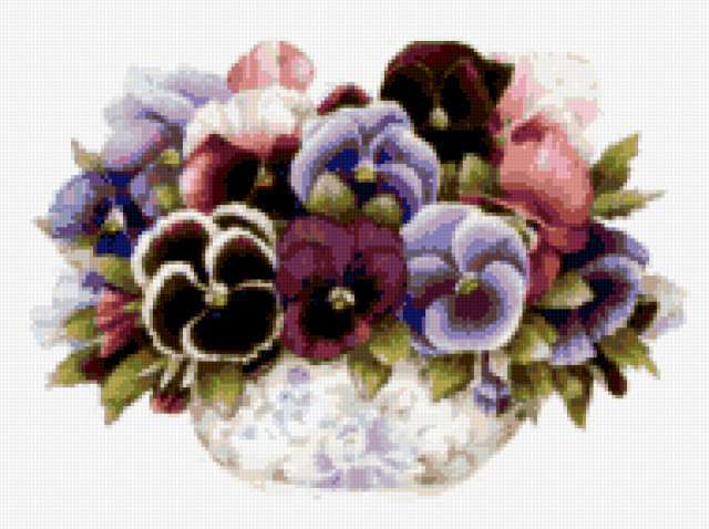 Ориентировочно так, схема вышивки «Unnamed-598269», созданная автором Minin, будет выглядеть при отшиве на канве. Размер данной вышивки равен 190x142 крестов, при этом используется 47 цветов. Ключевые слова, по которым можно найти эту схему: живопись, искусство, картина, природа, цветы, анютки. Также, вы можете взглянуть на оригинальную картинку, соответствующую данной схеме вышивки.
