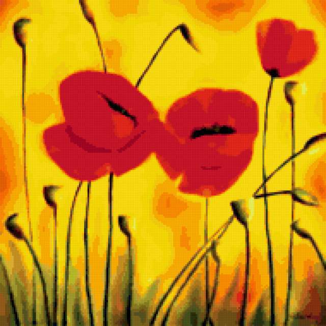 Ориентировочно так, схема вышивки «Unnamed-598410», созданная автором iborissova, будет выглядеть при отшиве на канве. Размер данной вышивки равен 190x190 крестов, при этом используется 47 цветов. Ключевые слова, по которым можно найти эту схему: poppies, field. Также, вы можете взглянуть на оригинальную картинку, соответствующую данной схеме вышивки.