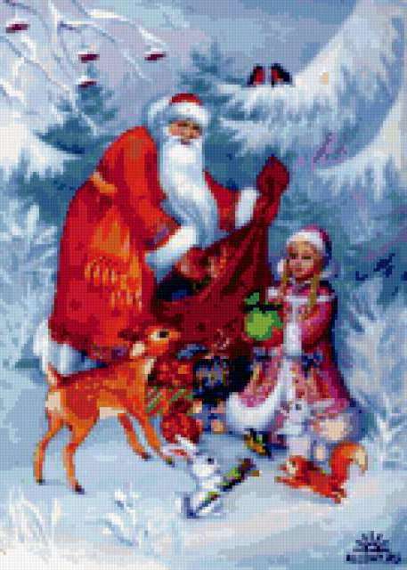 Ориентировочно так, схема вышивки «Unnamed-601012», созданная автором Troyanda, будет выглядеть при отшиве на канве. Размер данной вышивки равен 135x189 крестов, при этом используется 72 цветов. Ключевые слова, по которым можно найти эту схему: новый год. Также, вы можете взглянуть на оригинальную картинку, соответствующую данной схеме вышивки.