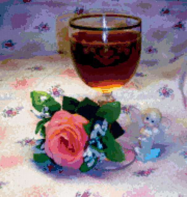 Ориентировочно так, схема вышивки «Unnamed-602462», созданная автором malkinaiv, будет выглядеть при отшиве на канве. Размер данной вышивки равен 180x190 крестов, при этом используется 87 цветов. Ключевые слова, по которым можно найти эту схему: натюрморт, цветы, вино. Также, вы можете взглянуть на оригинальную картинку, соответствующую данной схеме вышивки.