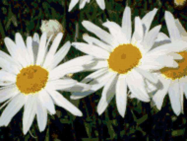 Ориентировочно так, схема вышивки «Unnamed-603036», созданная автором malkinaiv, будет выглядеть при отшиве на канве. Размер данной вышивки равен 190x143 крестов, при этом используется 43 цветов. Ключевые слова, по которым можно найти эту схему: цветы, ромашки. Также, вы можете взглянуть на оригинальную картинку, соответствующую данной схеме вышивки.