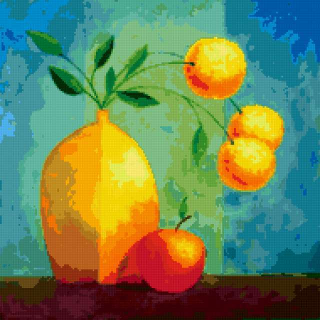 Ориентировочно так, схема вышивки «Unnamed-604604», созданная автором 9945, будет выглядеть при отшиве на канве. Размер данной вышивки равен 190x190 крестов, при этом используется 47 цветов. Ключевые слова, по которым можно найти эту схему: интерьер, ваза, яблоко. Также, вы можете взглянуть на оригинальную картинку, соответствующую данной схеме вышивки.